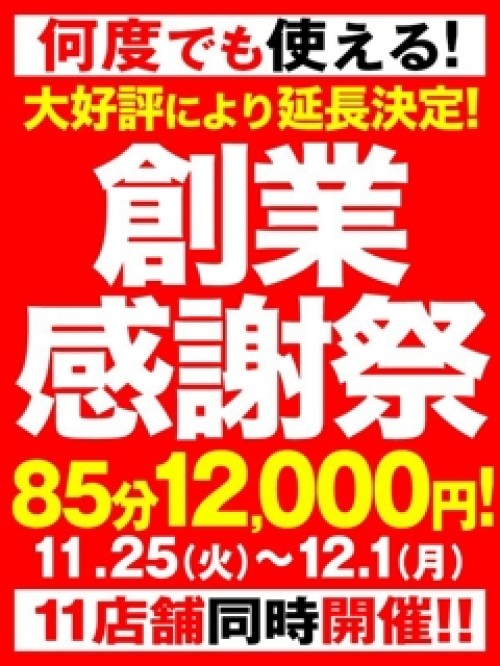 年一激アツ 最強イベント開催中!!! 創業感謝祭 祝!!BBW11周年 BBWグループ 11店舗同時開催 85分12,000円 更に入会金無料!! ※指名料・本指名料は別途 ※ご予約時に「創業感謝祭」と お伝えください。 期間限定 11/25(火)~12/1(月) ーーーーーーー BBW札幌店 受付時間:12:00~24:00 TEL.011-520-1129