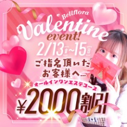 バレンタインイベント 2/13~2/15限定 日頃の感謝を込めて 当店からのプレゼント! オールインワンエステコース 2000円割引!! ※水着で密着エステコース、フリー対象外となります。